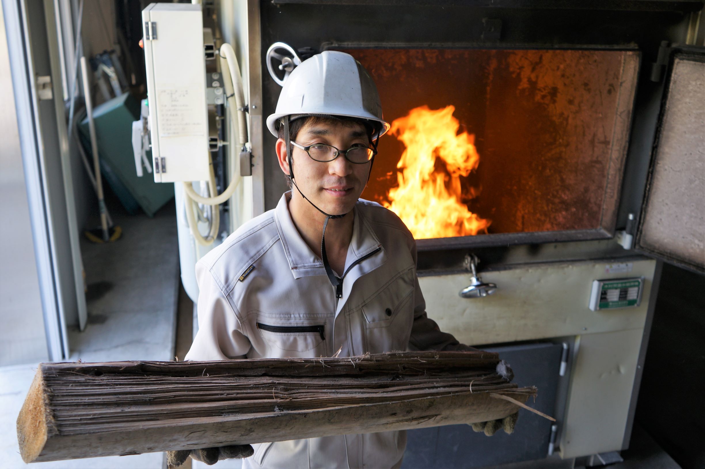 間伐材を湯谷温泉(新城市)に熱源として供給する合同会社フォレストエネルギーの大西康史さん(同市協力隊OB)、