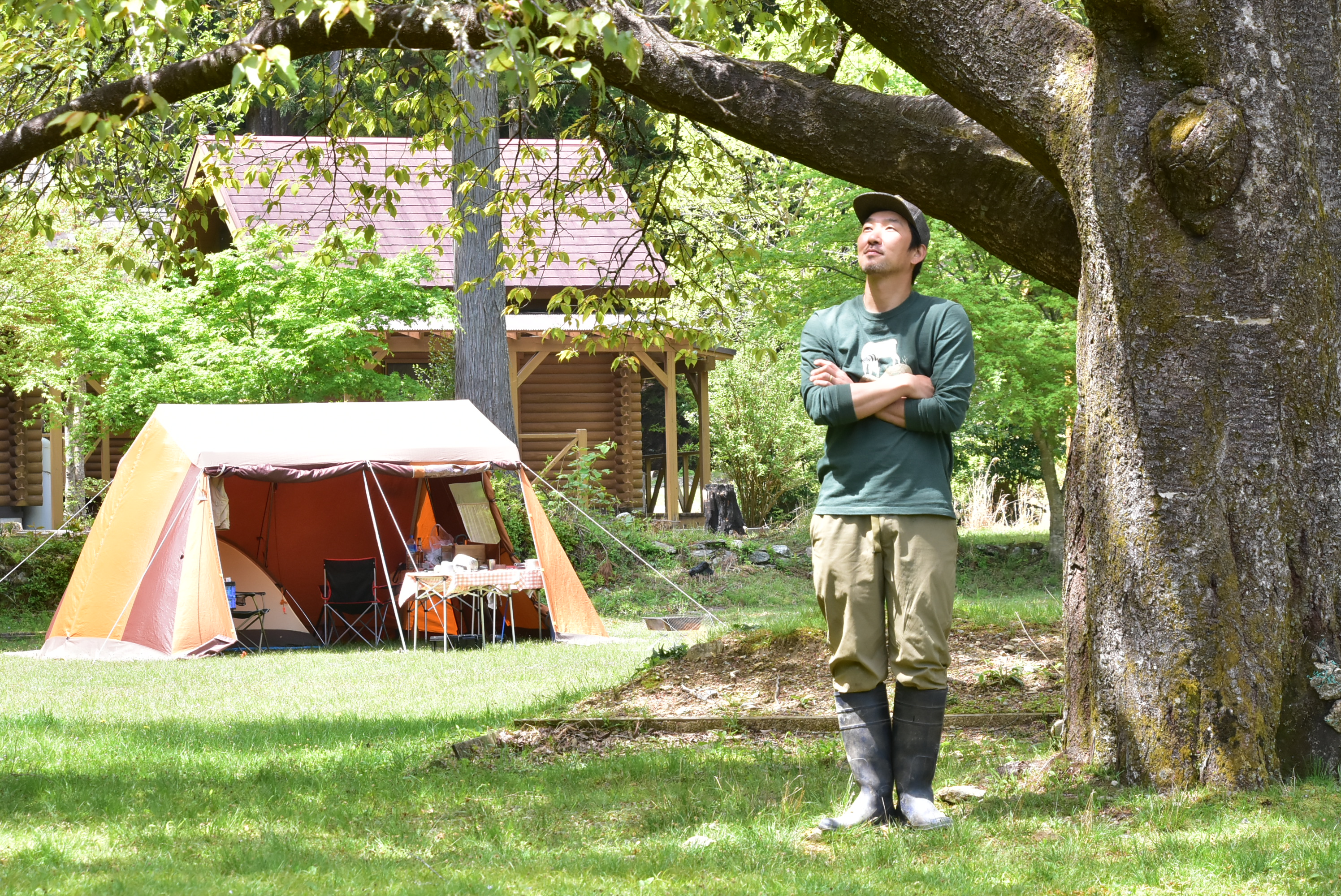 浜松市天竜区の山中で人気キャンプ場「龍山秘密村」の“村長”を務める川道光司さん(浜松山里いきいき応援隊OB)、